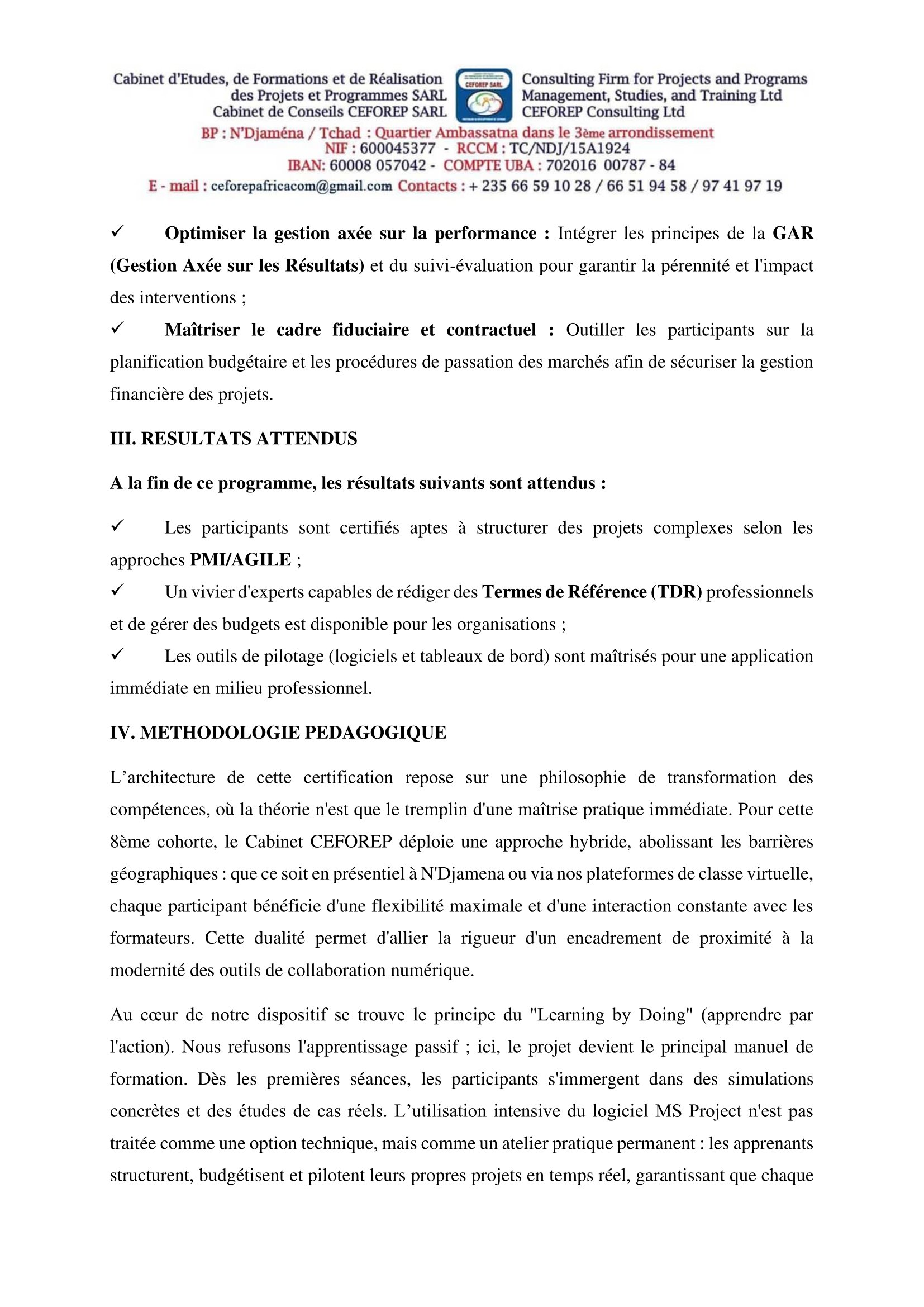 Accueil » Opportunités » Afrique » Tchad » Le Cabinet CEFOREP Sarl basé à N’Djamena lance sa 8ème cohorte de certification en management des projets et programmes, Tchad