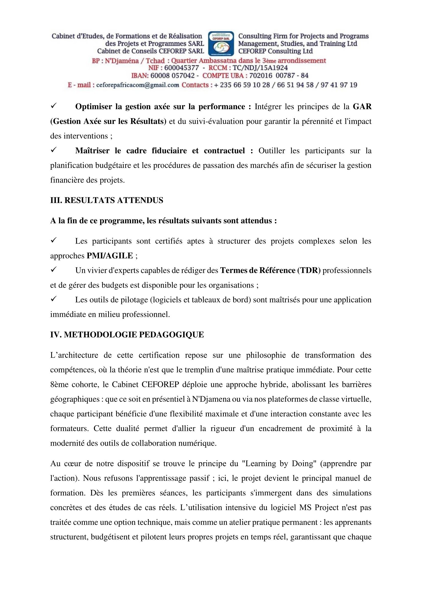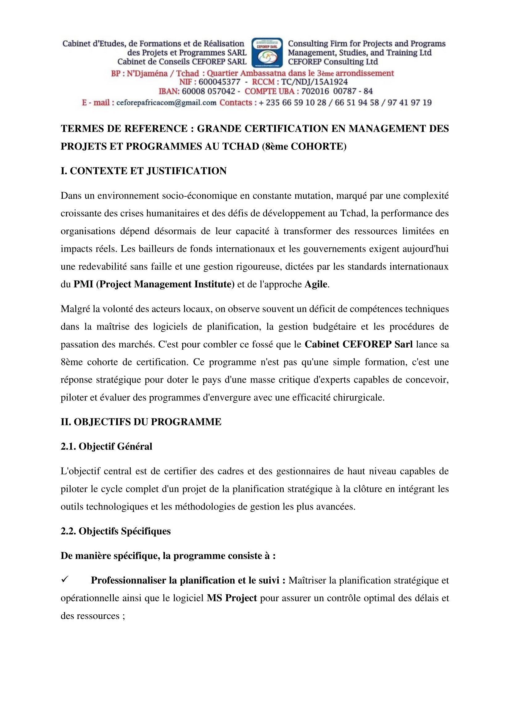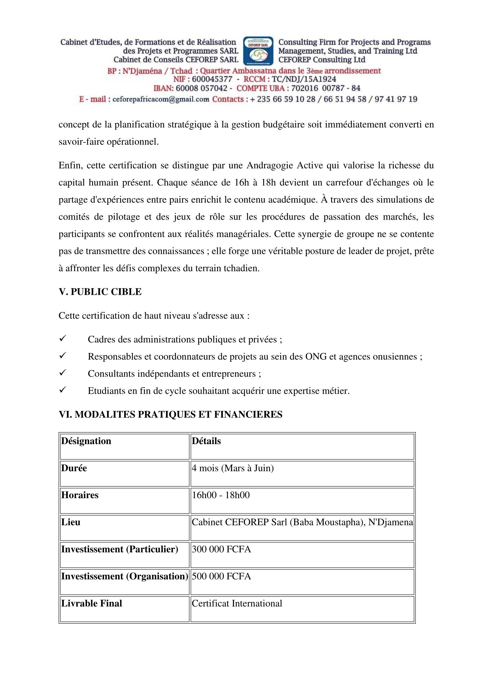 Accueil » Opportunités » Afrique » Tchad » Participez à la formation certifiante de CEFOREP SARL au Tchad en Management des Projets et Programmes