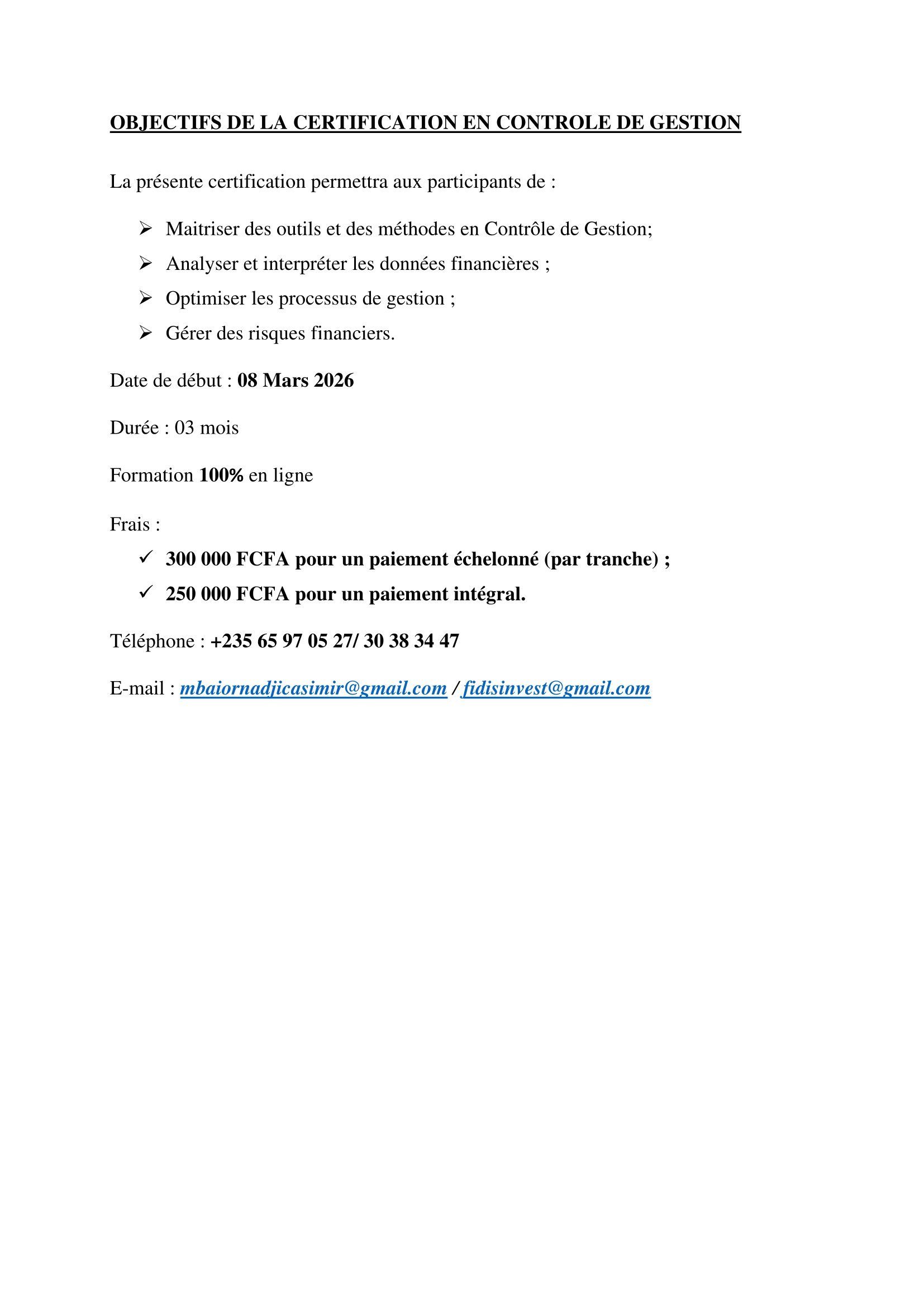 Rejoignez la formation certifiante en contrôle de gestion organisée par Ceforep SARL, Fidis Invest et KSBC