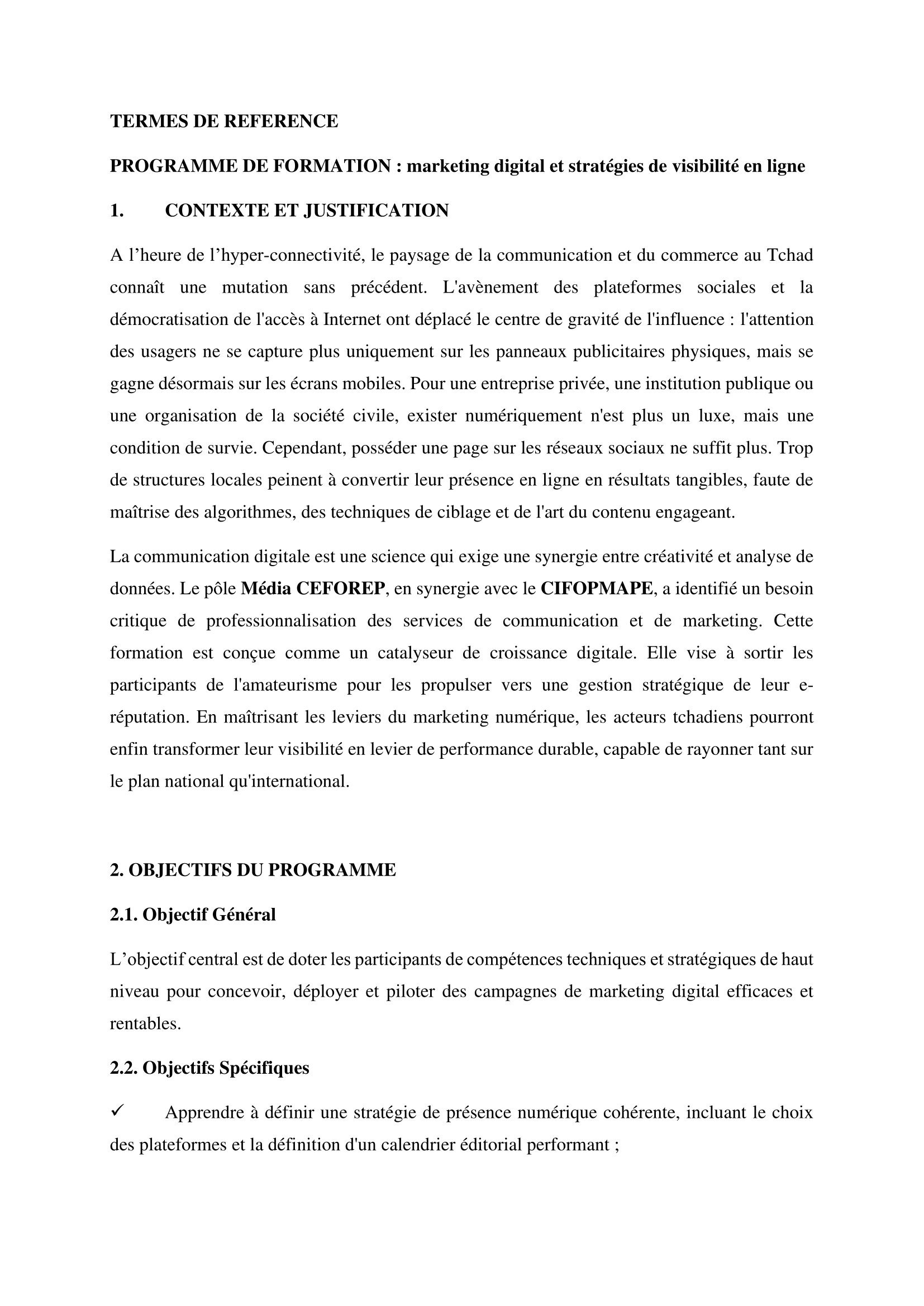 Formation certifiante en marketing digital et stratégies de visibilité en ligne – CEFOREP SARL & CIFOPMAPE