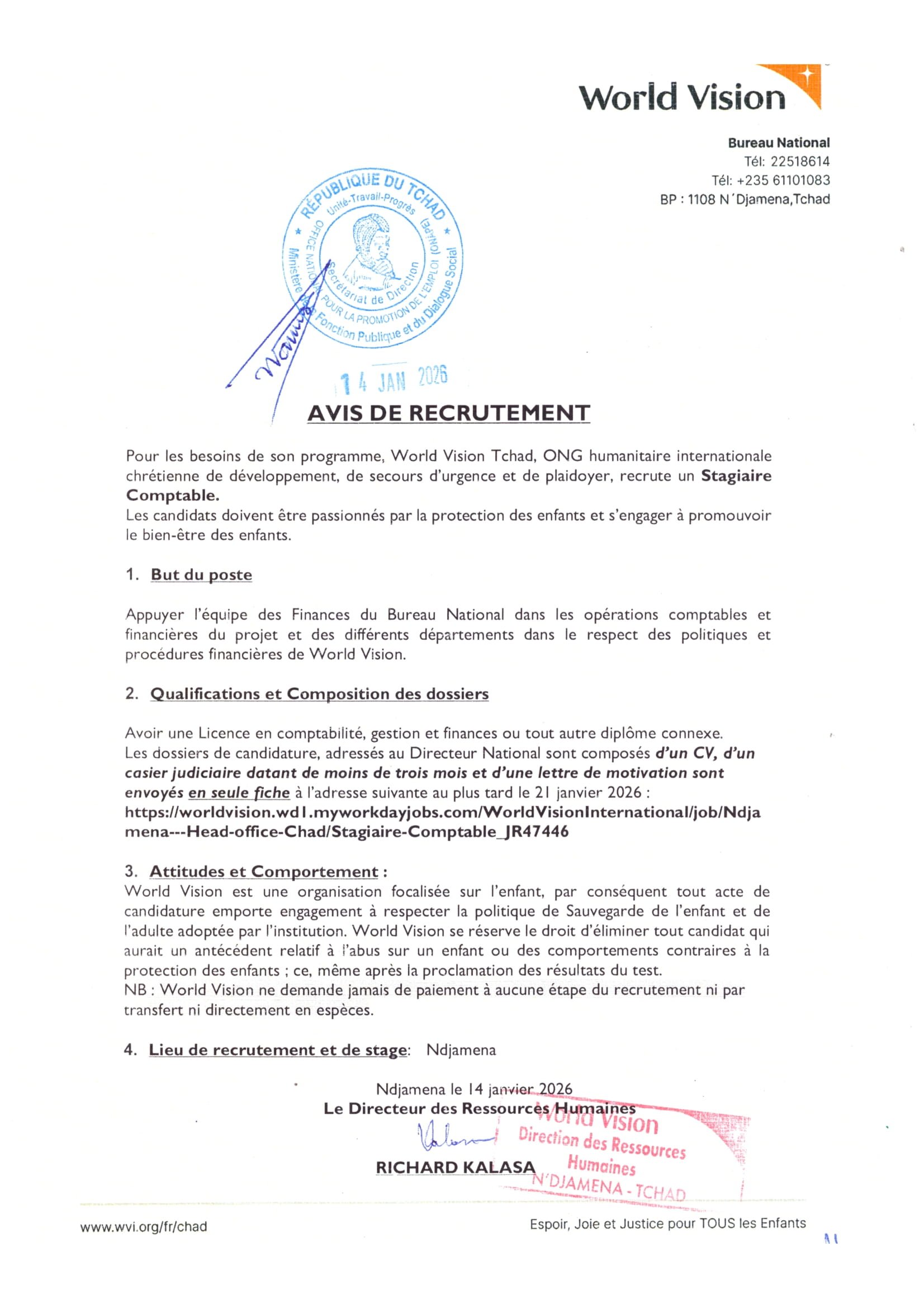 World Vision recherche un(e) Stagiaire Comptable – N’Djamena, Tchad