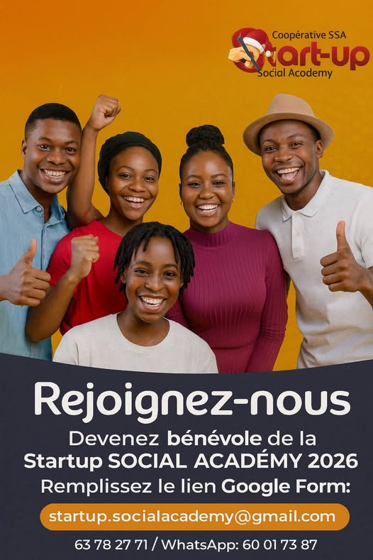 La Startup Social Academy ouvre officiellement son programme de bénévolat édition 2026 et recherche des jeunes motivés, passionnés par l’impact social, l’entrepreneuriat et le leadership.