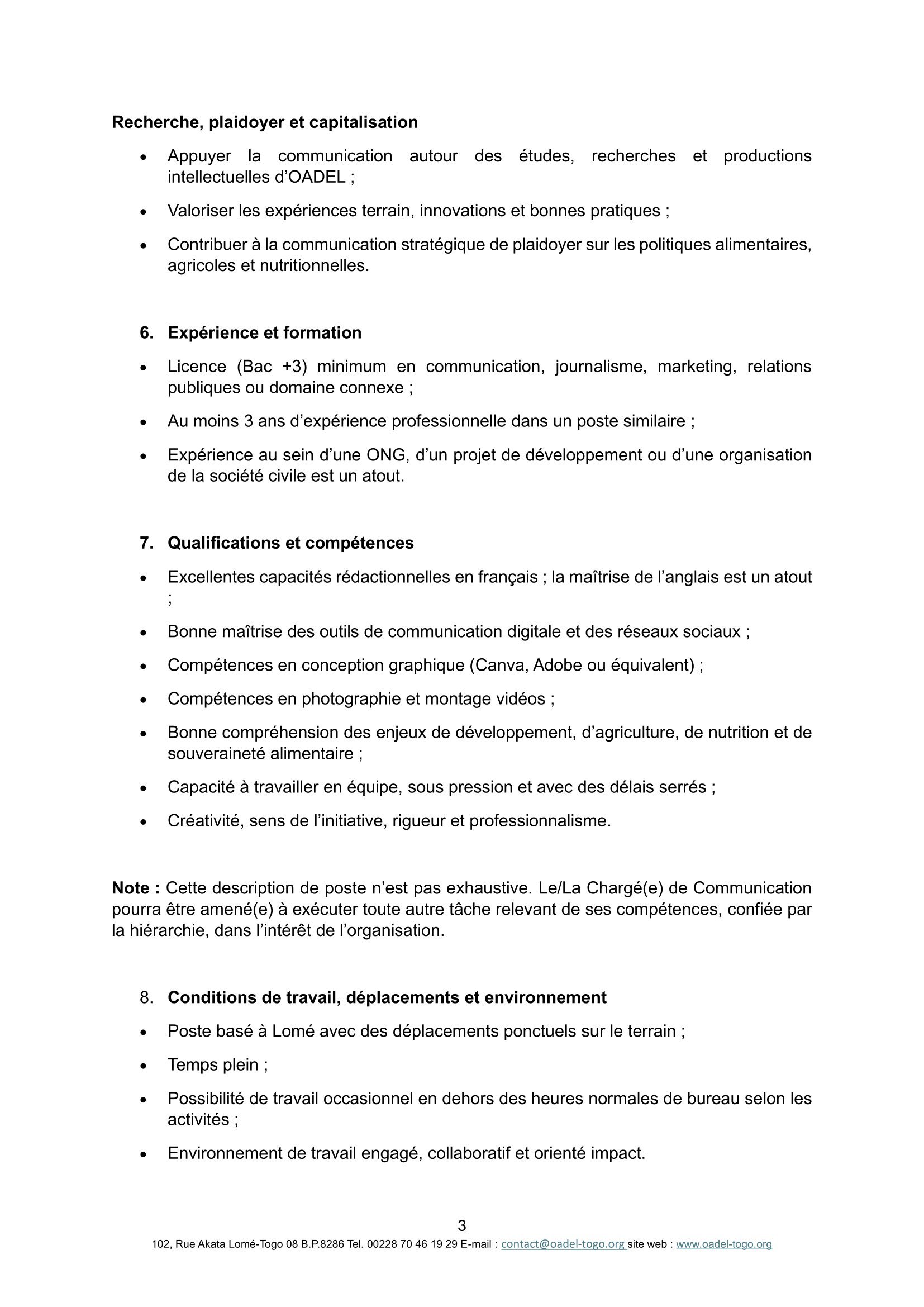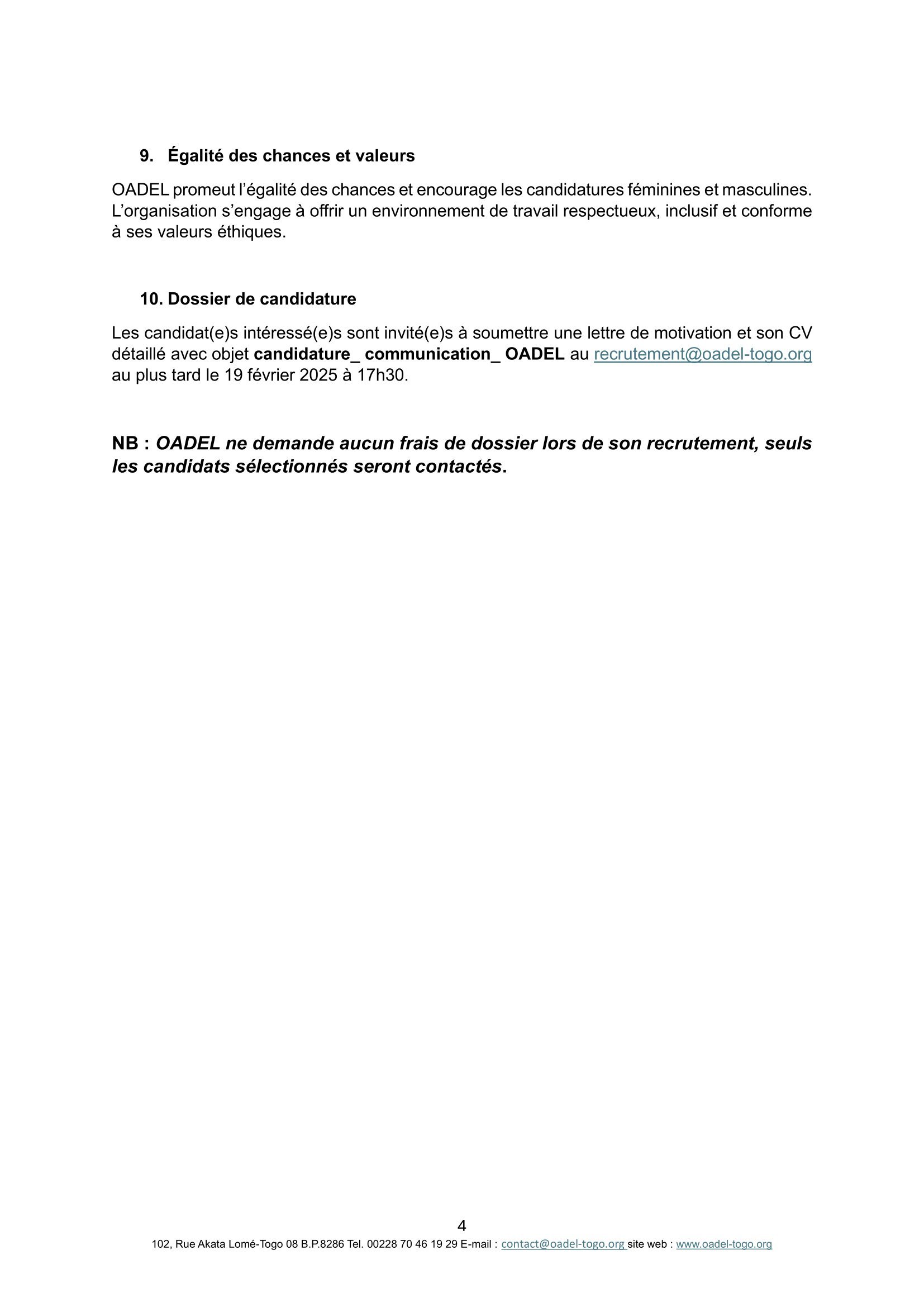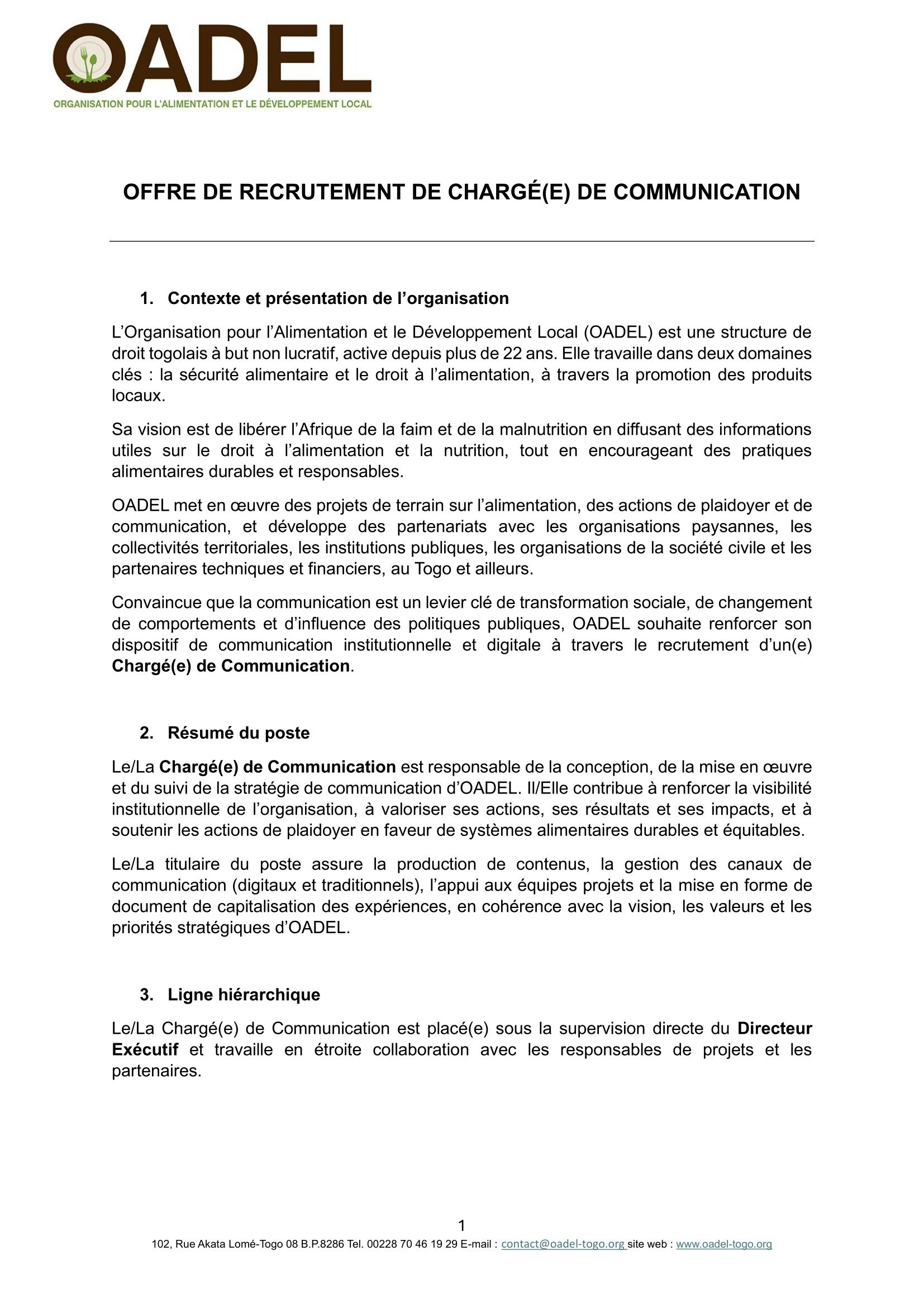 Accueil » Opportunités » Afrique » Togo » OADEL recrute un(e) Chargé(e) de communication, Togo